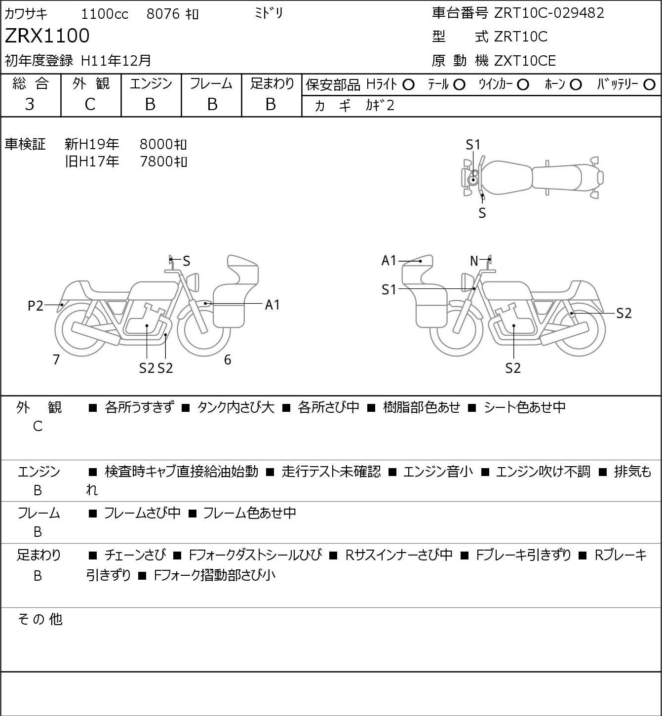 Detailed vehicle condition analysis performed by Japanese experts. Check damage codes below.
