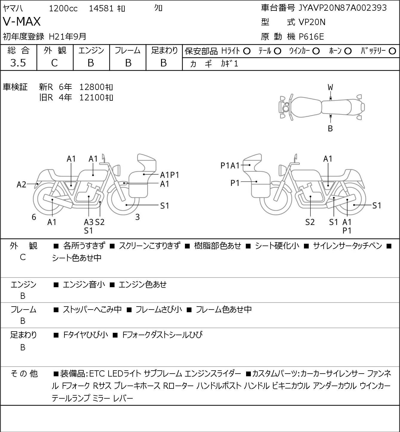 Detailed vehicle condition analysis performed by Japanese experts. Check damage codes below.