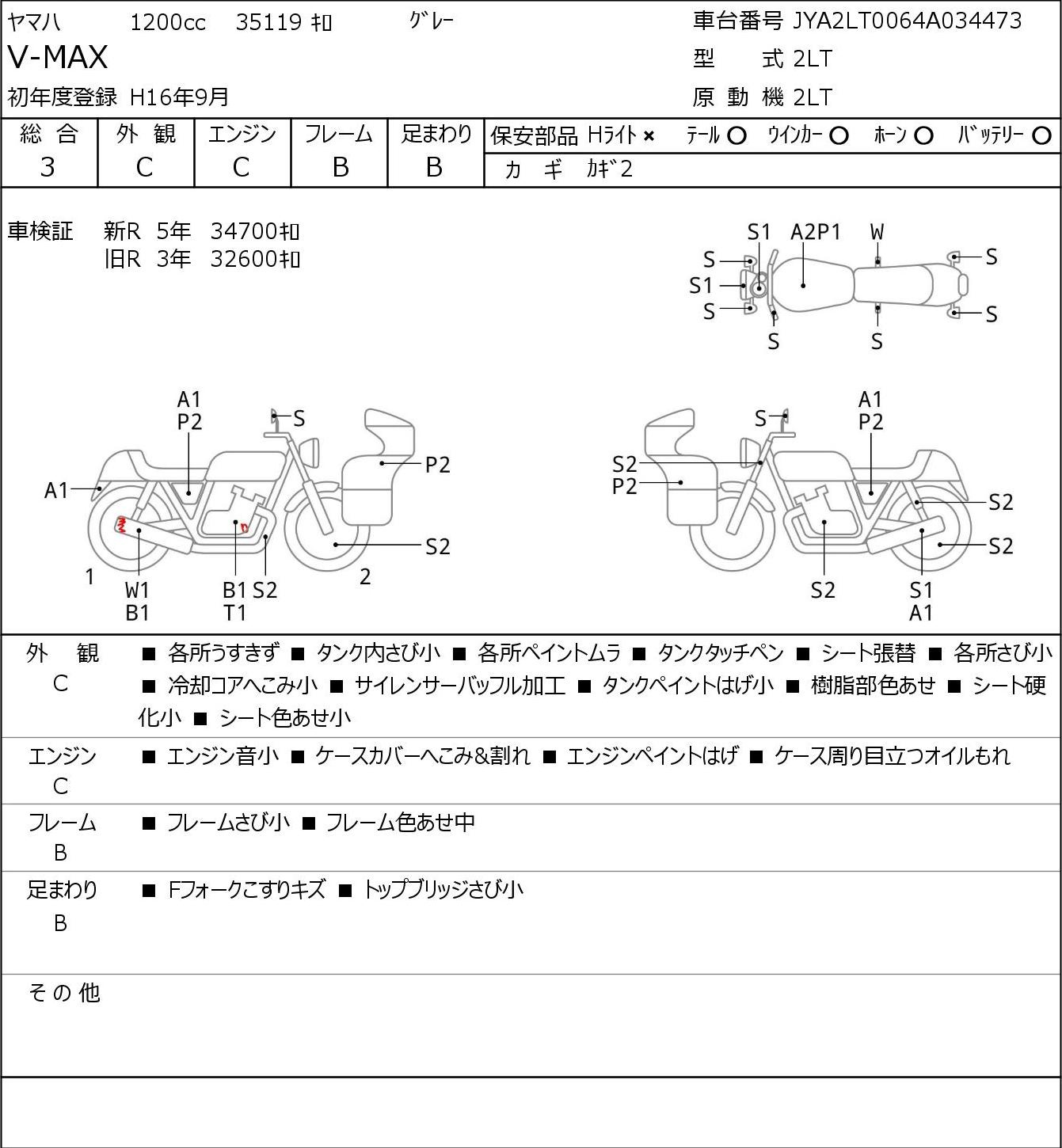 Detailed vehicle condition analysis performed by Japanese experts. Check damage codes below.