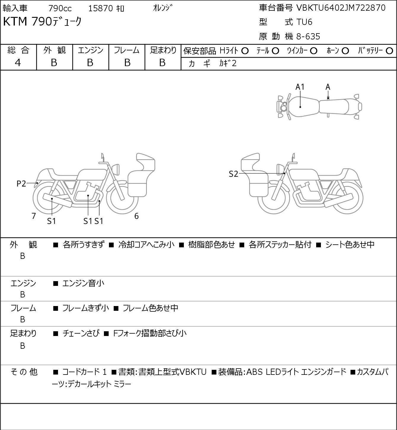 Detailed vehicle condition analysis performed by Japanese experts. Check damage codes below.
