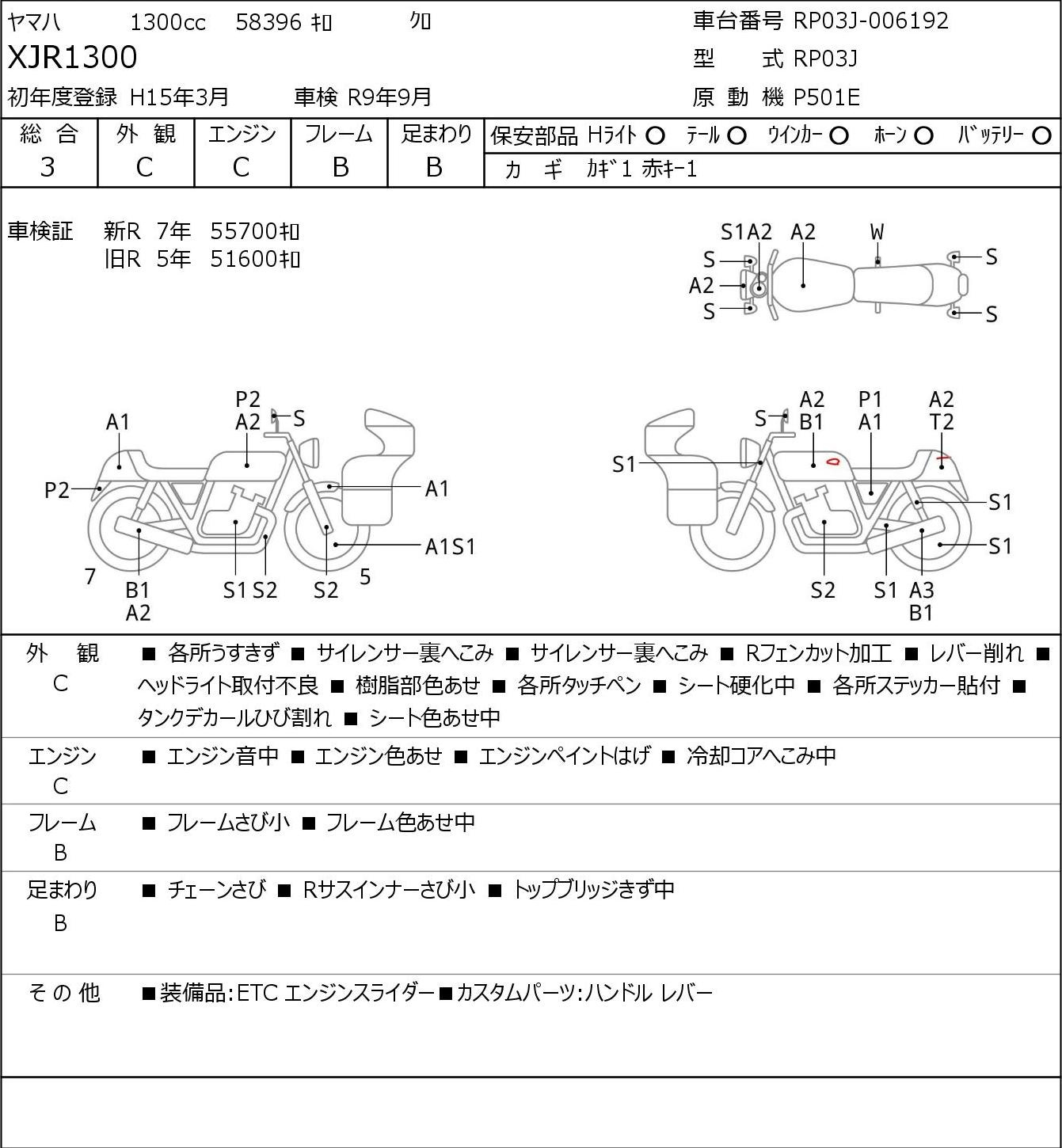 Detailed vehicle condition analysis performed by Japanese experts. Check damage codes below.