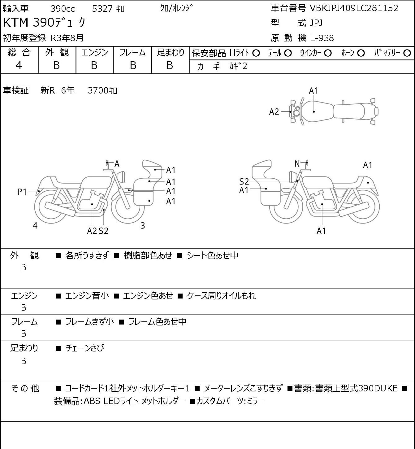 Detailed vehicle condition analysis performed by Japanese experts. Check damage codes below.