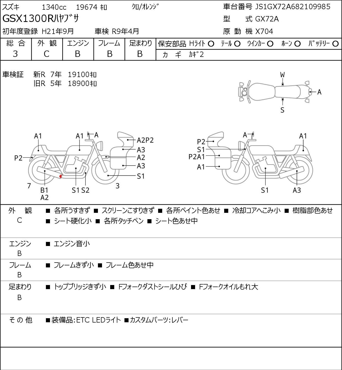 Detailed vehicle condition analysis performed by Japanese experts. Check damage codes below.