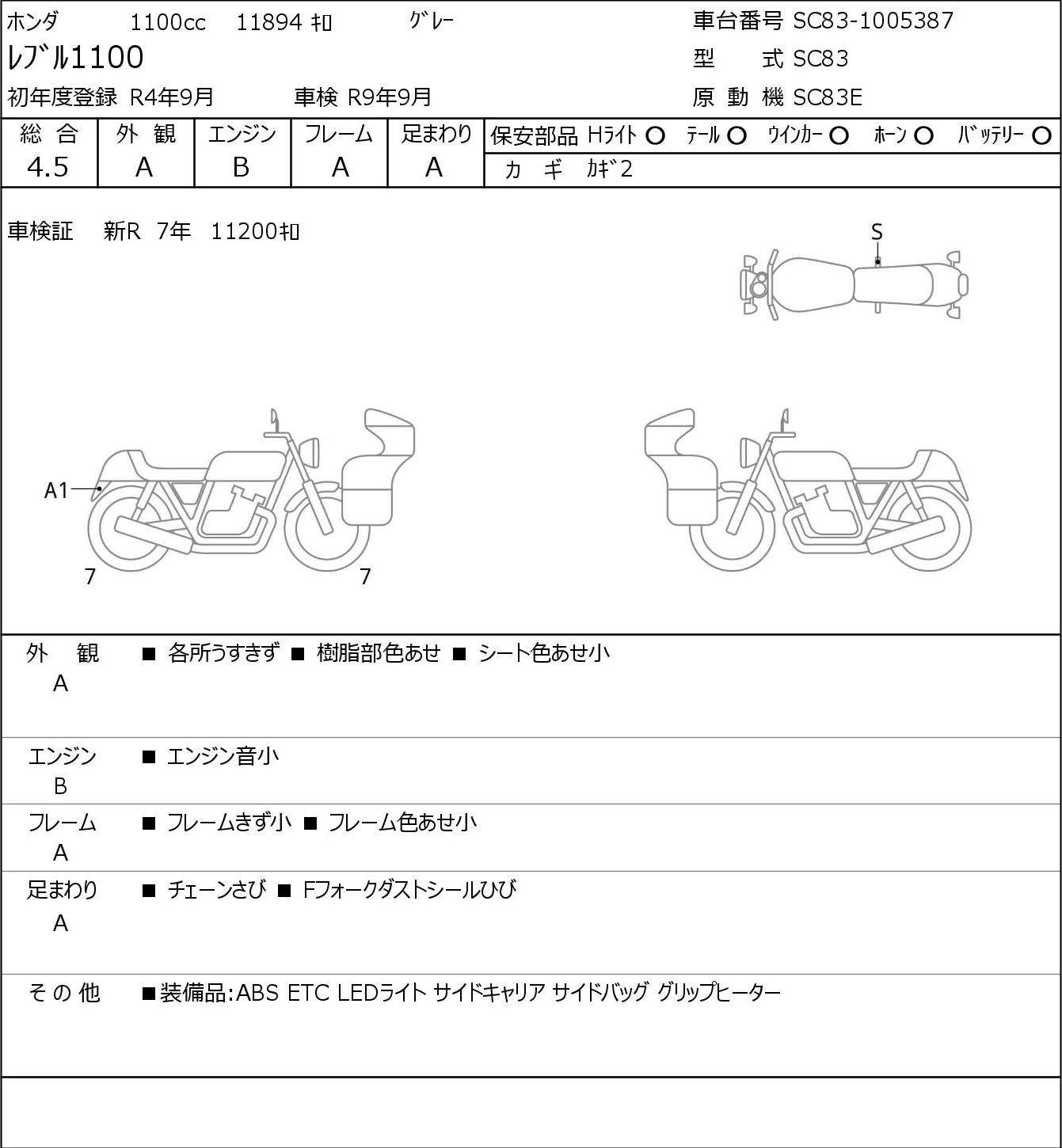 Detailed vehicle condition analysis performed by Japanese experts. Check damage codes below.