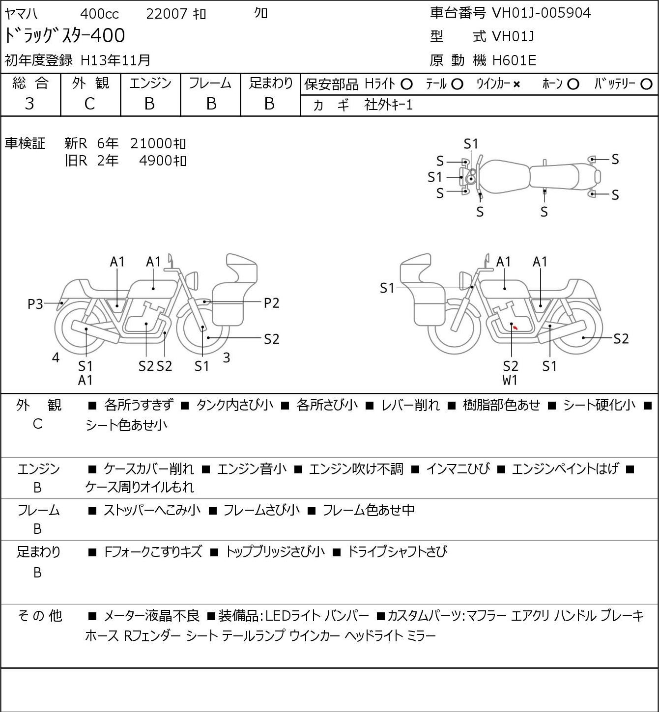 Detailed vehicle condition analysis performed by Japanese experts. Check damage codes below.