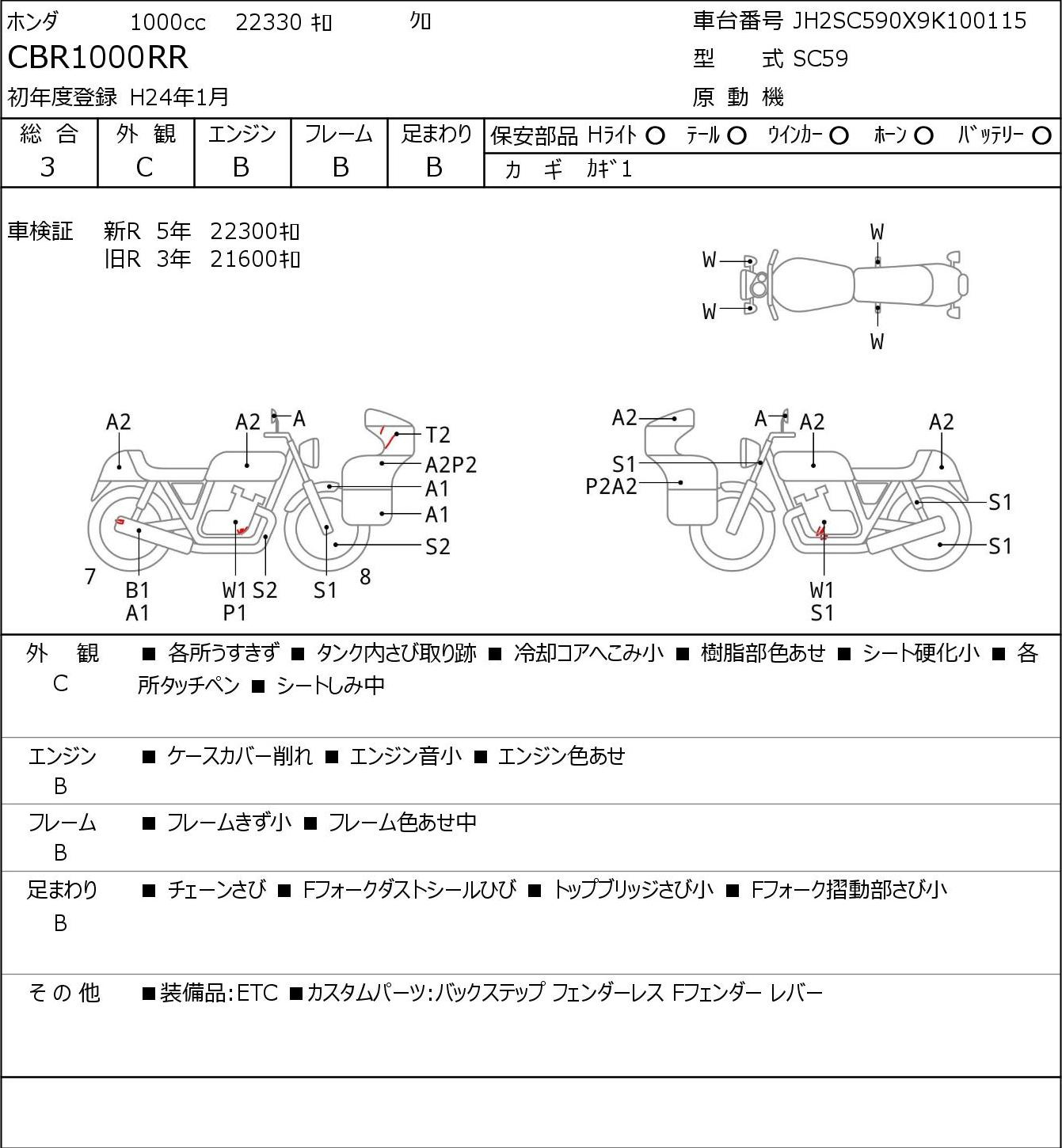 Detailed vehicle condition analysis performed by Japanese experts. Check damage codes below.