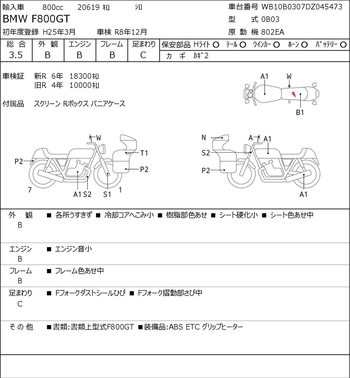 Detailed vehicle condition analysis performed by Japanese experts. Check damage codes below.