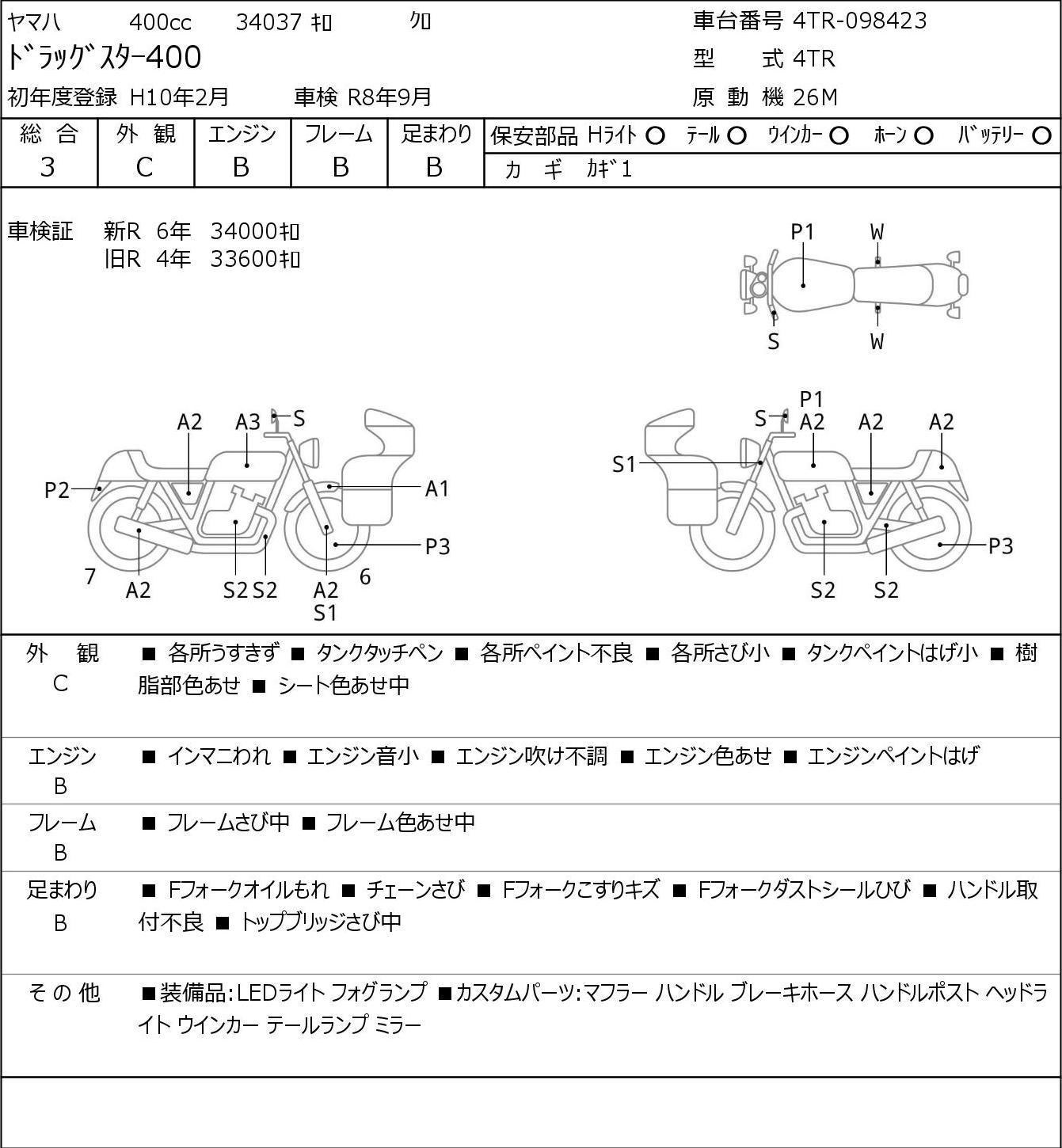 Detailed vehicle condition analysis performed by Japanese experts. Check damage codes below.