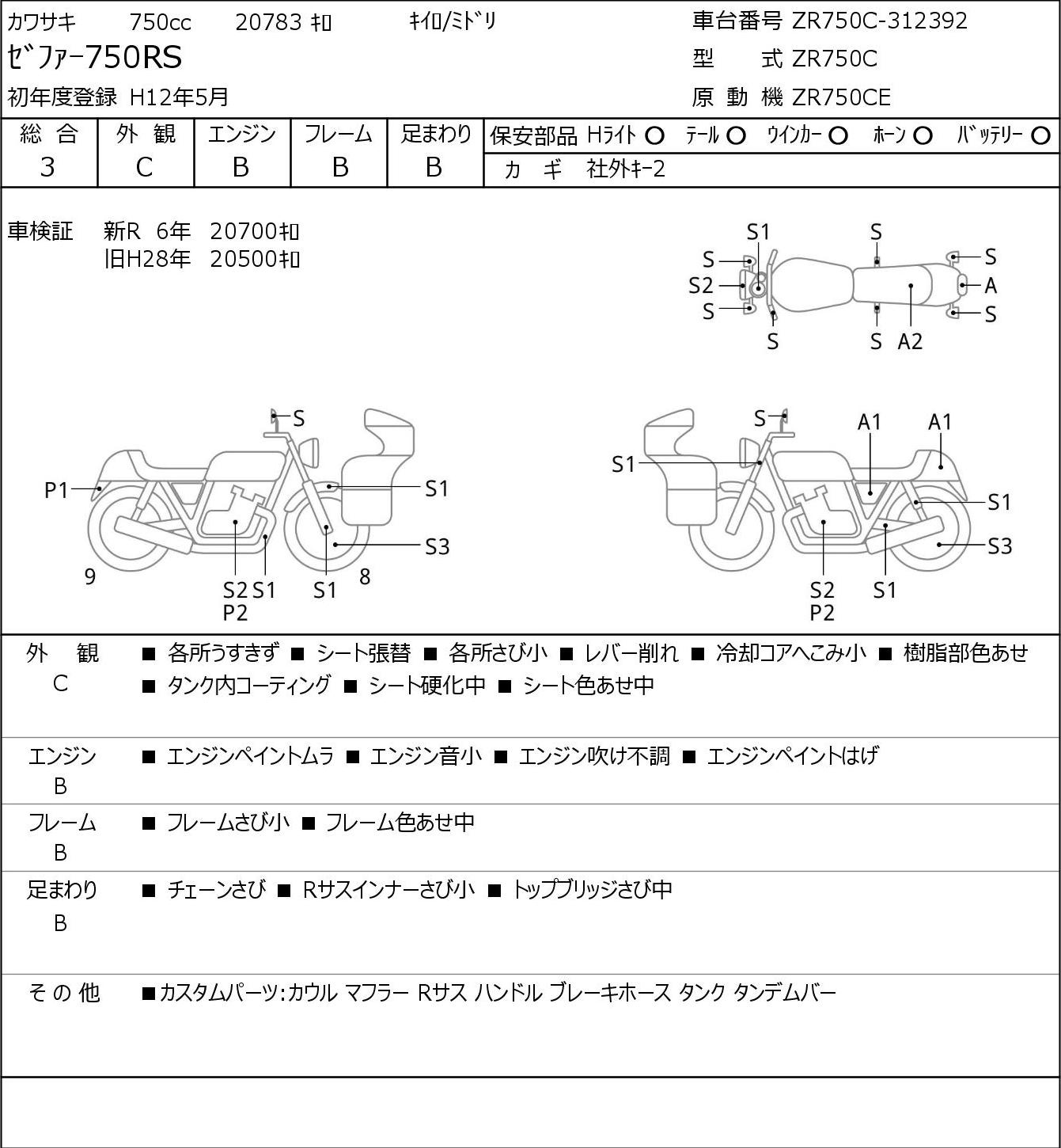 Detailed vehicle condition analysis performed by Japanese experts. Check damage codes below.