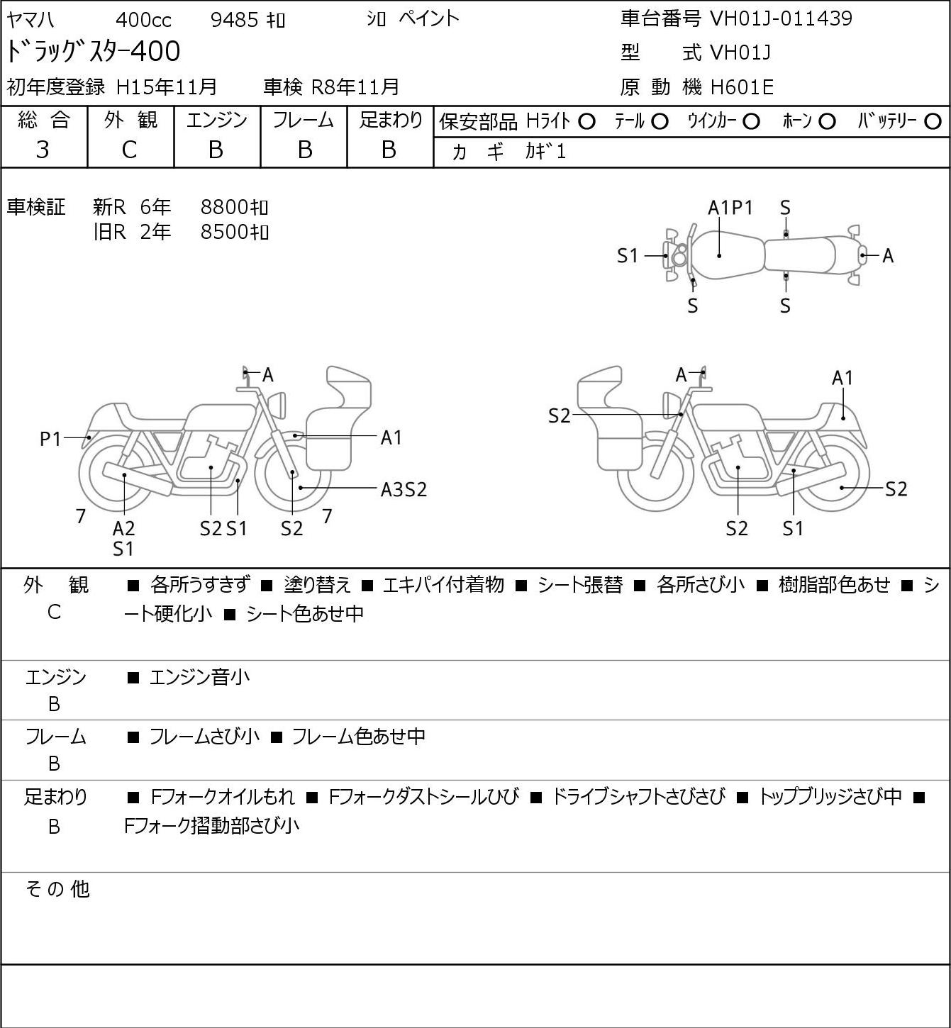 Detailed vehicle condition analysis performed by Japanese experts. Check damage codes below.
