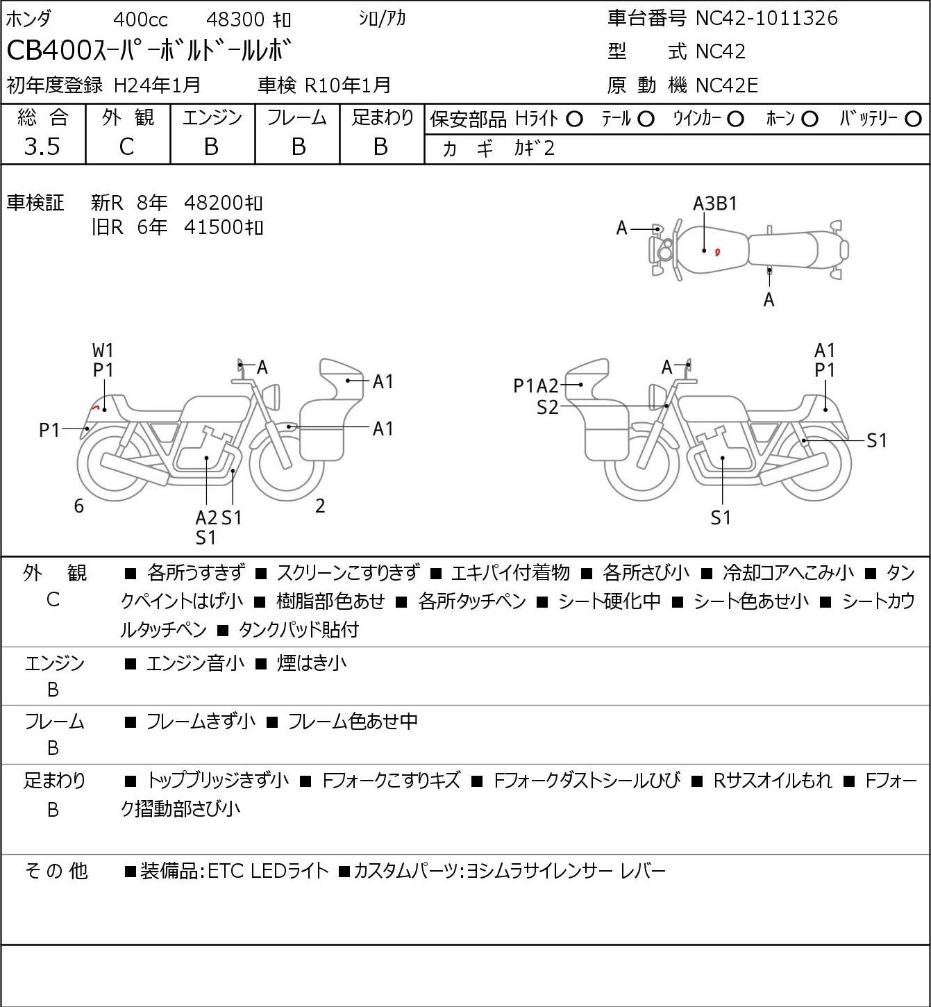 Detailed vehicle condition analysis performed by Japanese experts. Check damage codes below.