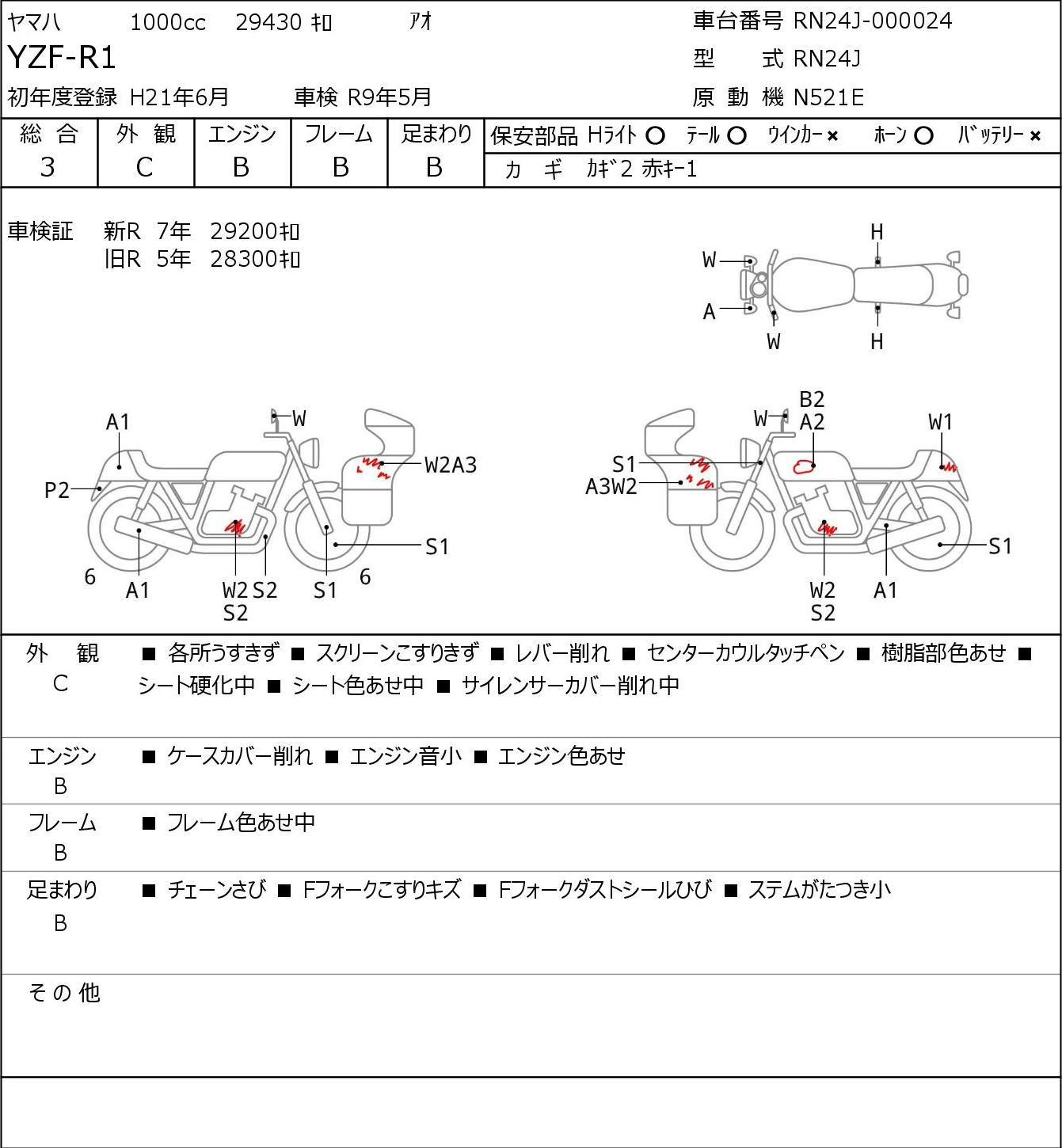 Detailed vehicle condition analysis performed by Japanese experts. Check damage codes below.