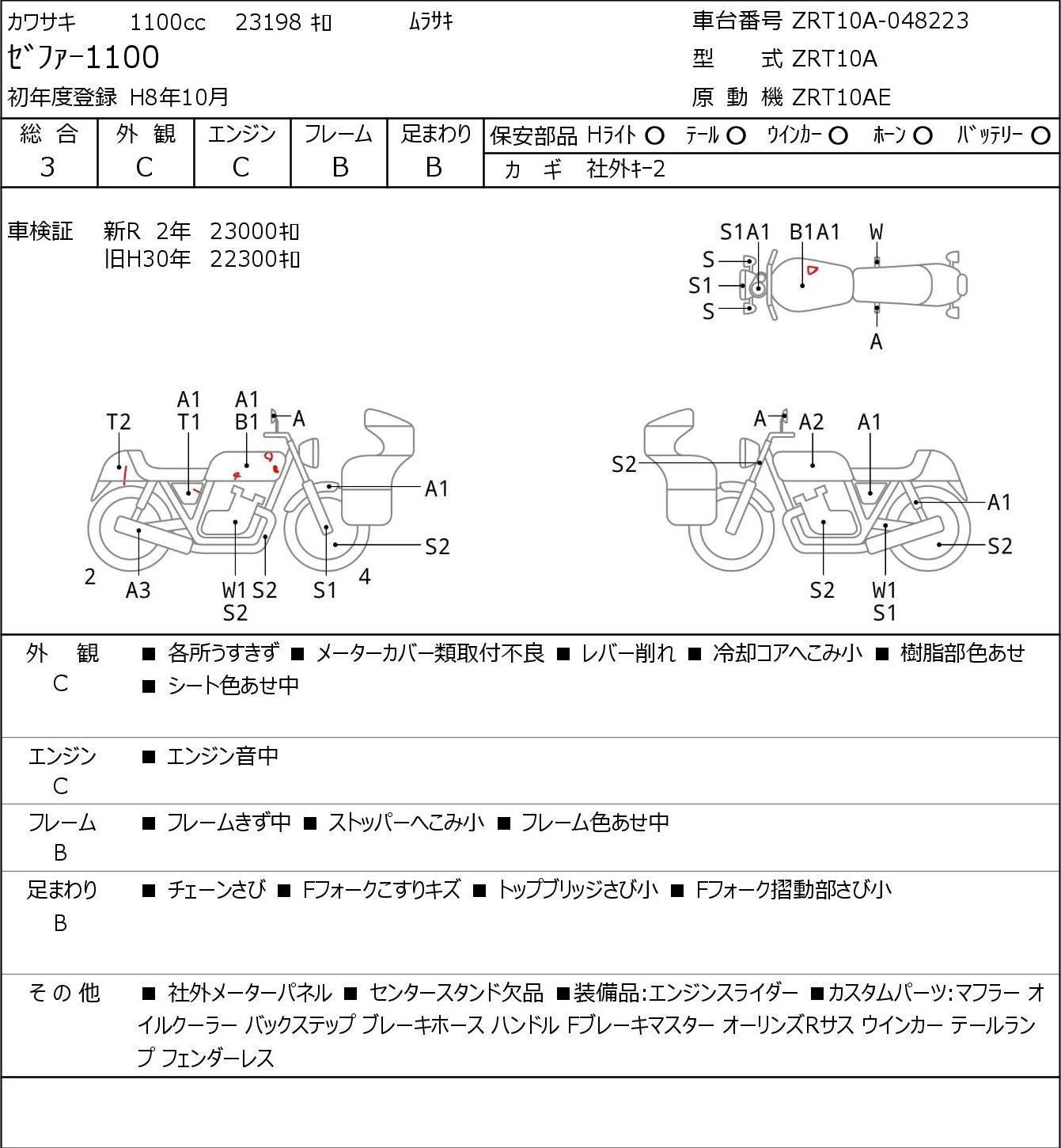 Detailed vehicle condition analysis performed by Japanese experts. Check damage codes below.
