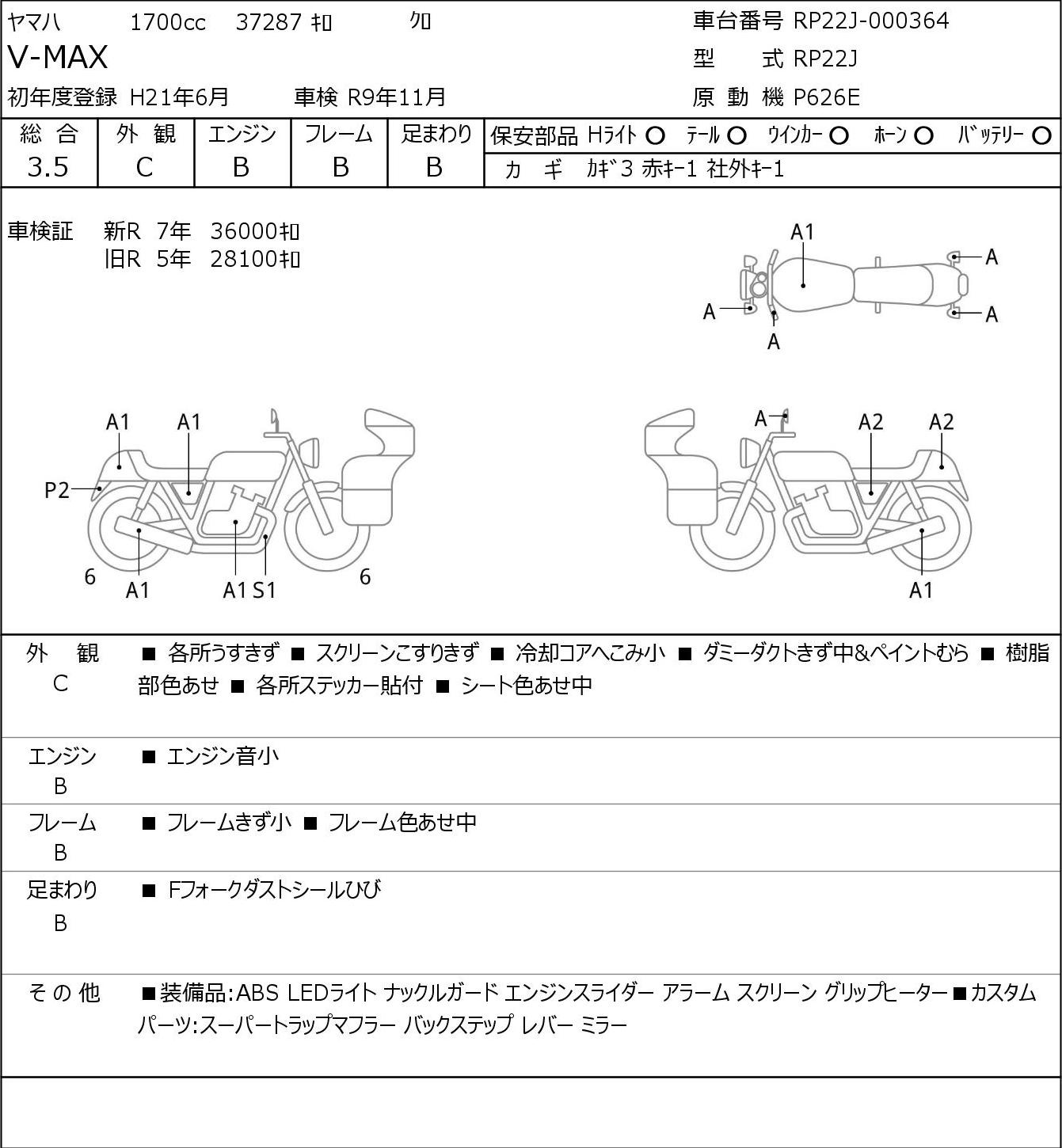 Detailed vehicle condition analysis performed by Japanese experts. Check damage codes below.