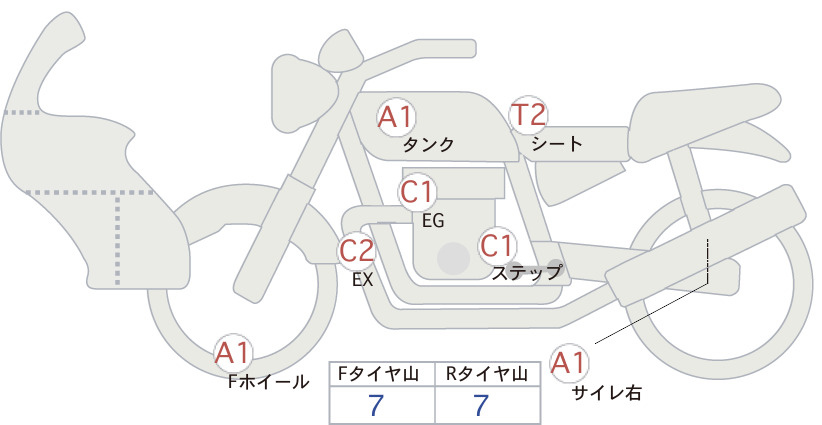 Detailed vehicle condition analysis performed by Japanese experts. Check damage codes below.