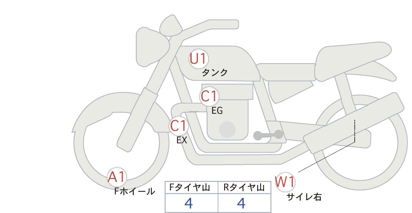Detailed vehicle condition analysis performed by Japanese experts. Check damage codes below.