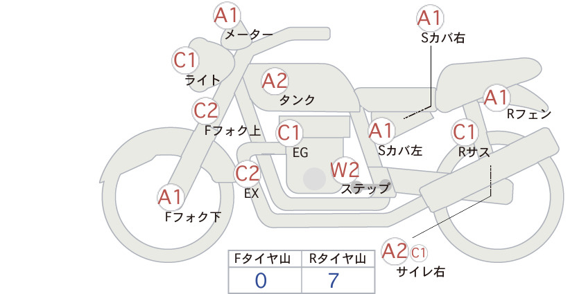 Detailed vehicle condition analysis performed by Japanese experts. Check damage codes below.
