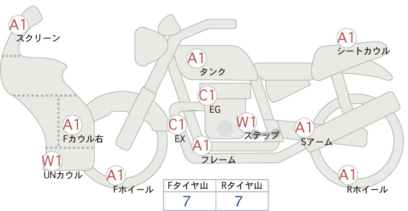 Detailed vehicle condition analysis performed by Japanese experts. Check damage codes below.