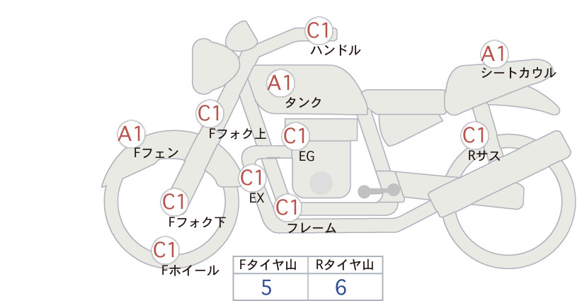 Detailed vehicle condition analysis performed by Japanese experts. Check damage codes below.