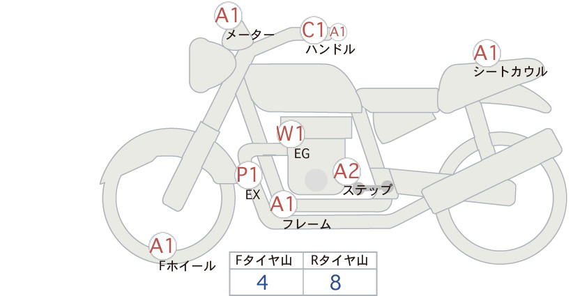 Detailed vehicle condition analysis performed by Japanese experts. Check damage codes below.