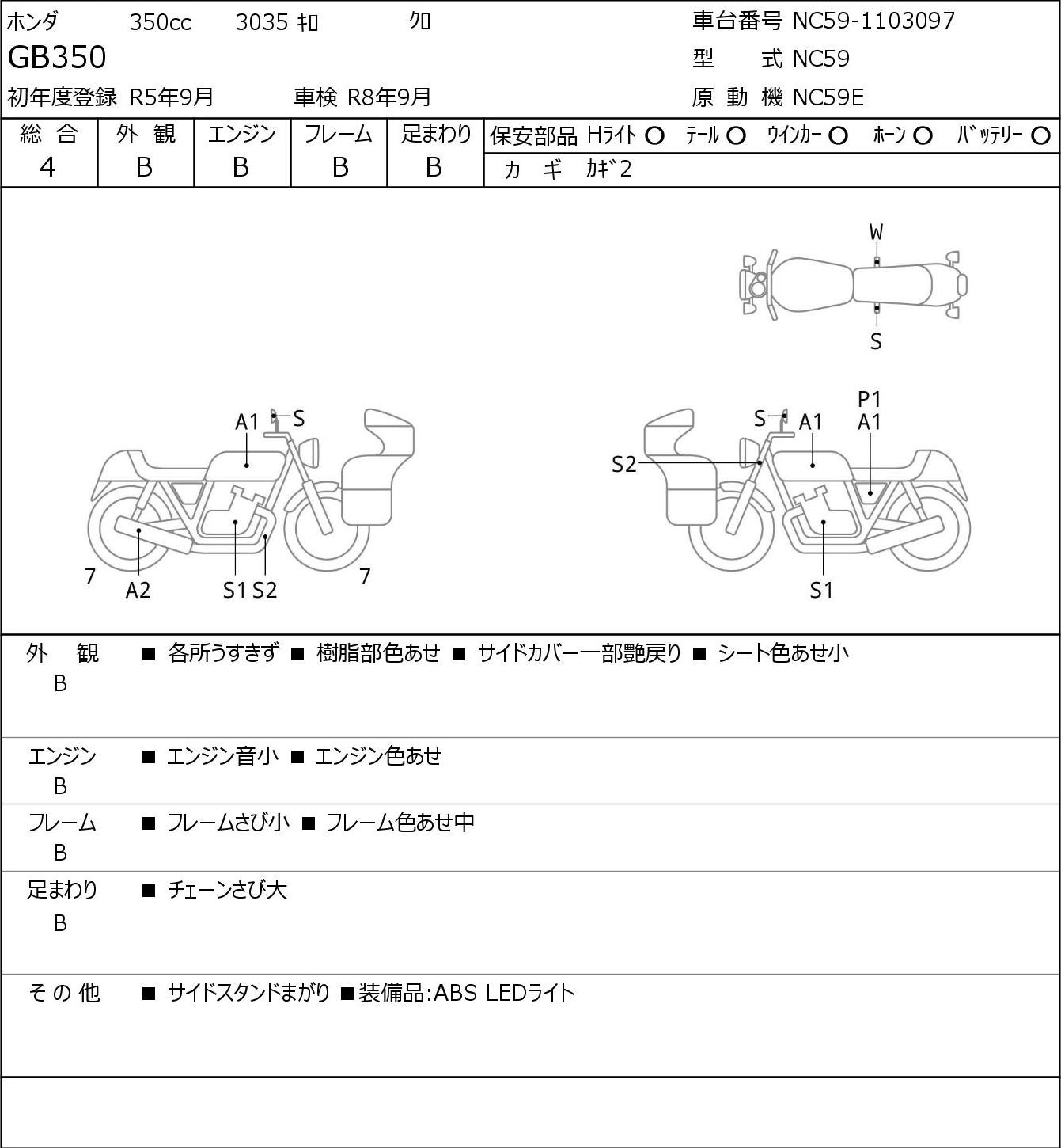 Detailed vehicle condition analysis performed by Japanese experts. Check damage codes below.