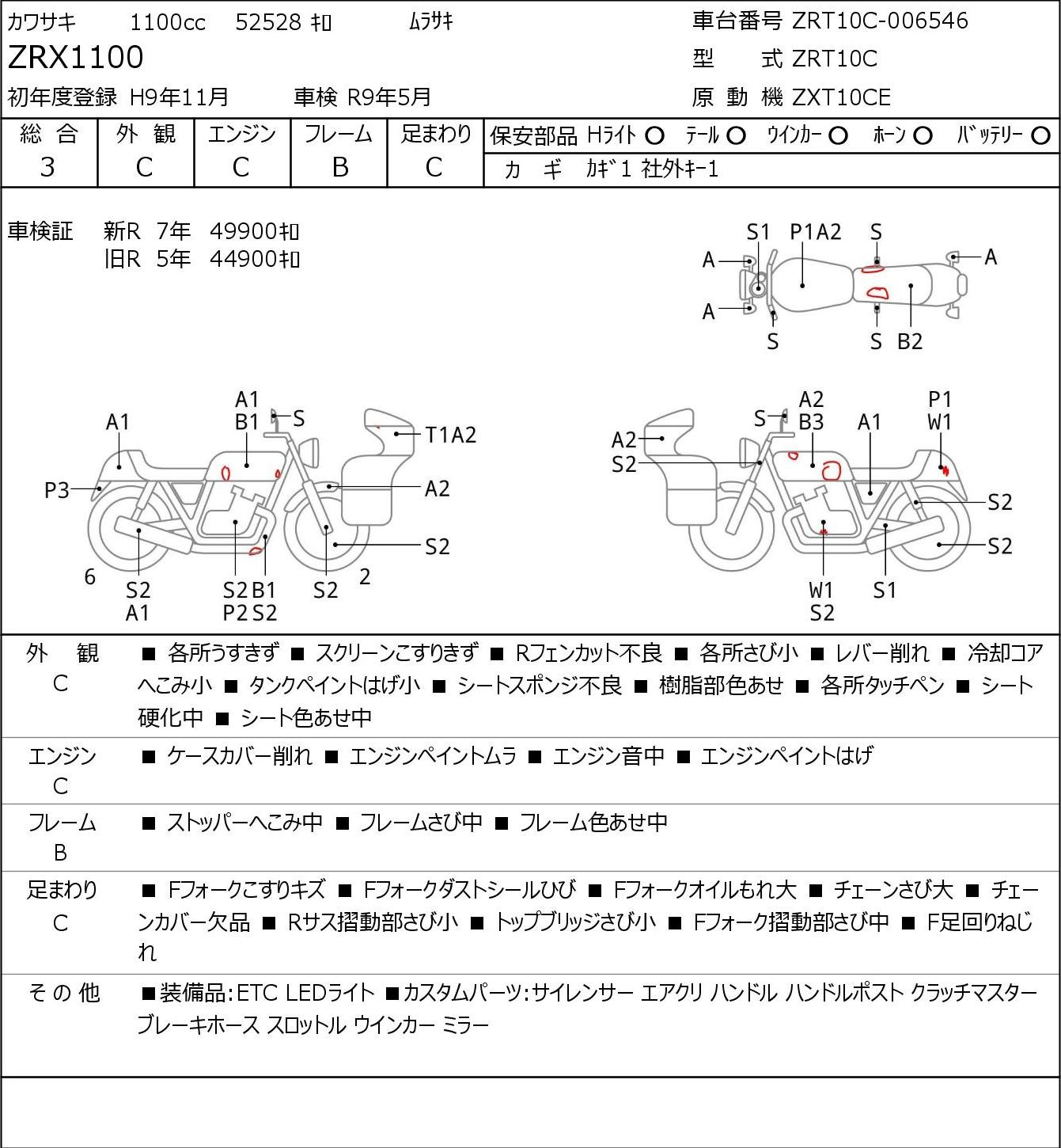 Detailed vehicle condition analysis performed by Japanese experts. Check damage codes below.