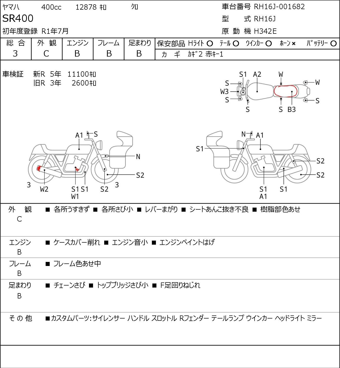 Detailed vehicle condition analysis performed by Japanese experts. Check damage codes below.