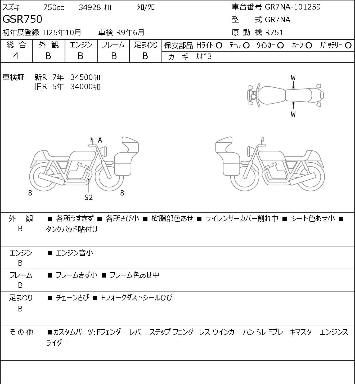 Detailed vehicle condition analysis performed by Japanese experts. Check damage codes below.
