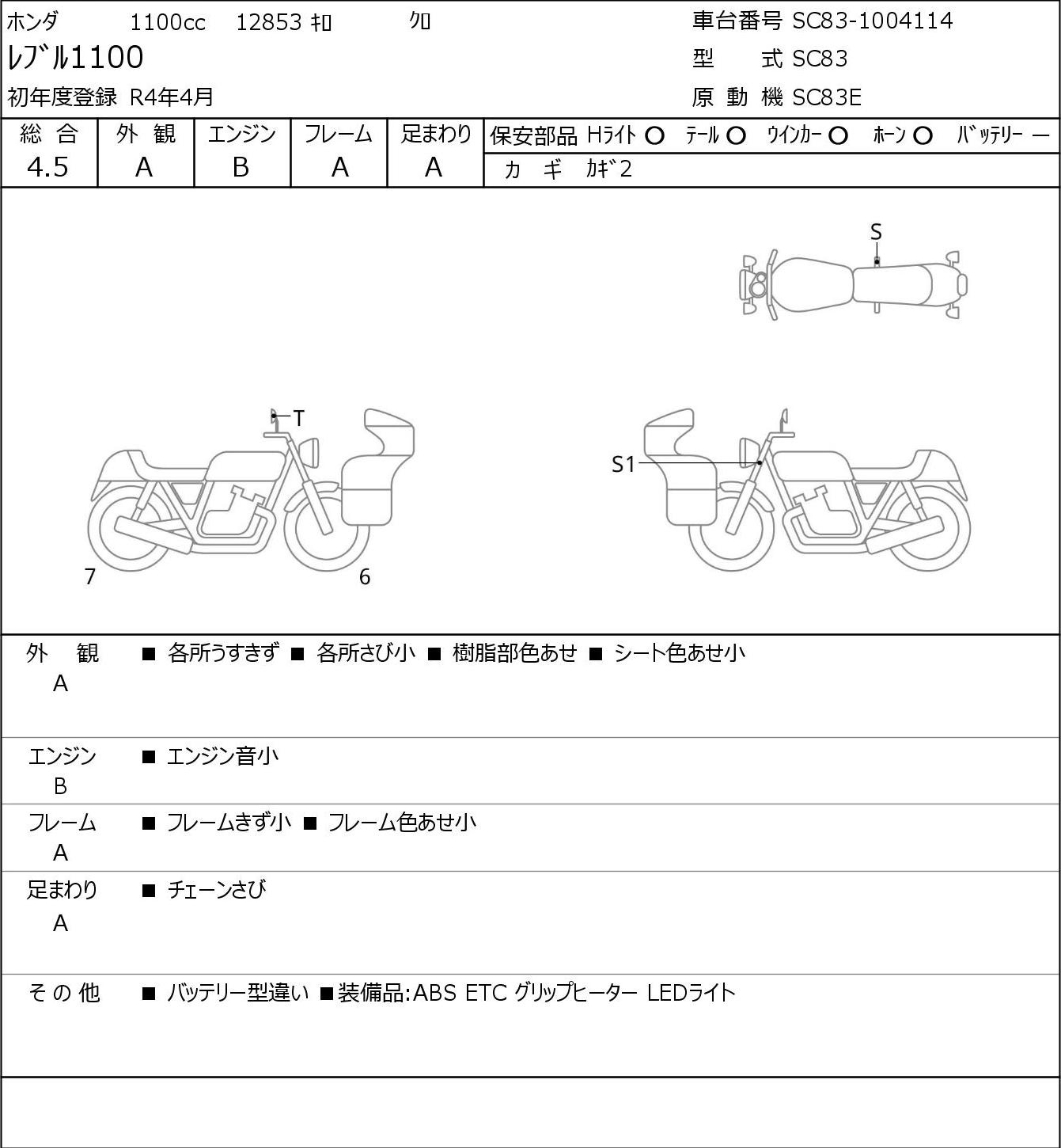 Detailed vehicle condition analysis performed by Japanese experts. Check damage codes below.