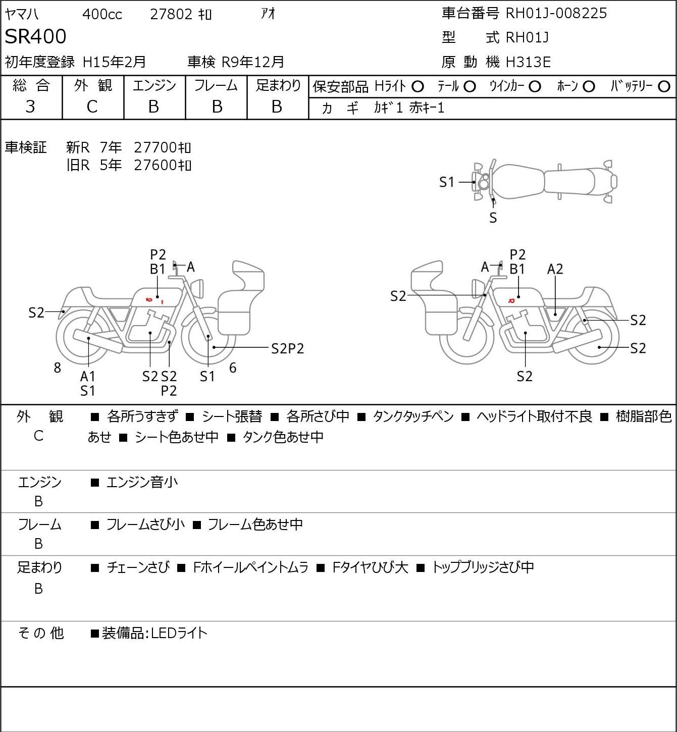 Detailed vehicle condition analysis performed by Japanese experts. Check damage codes below.