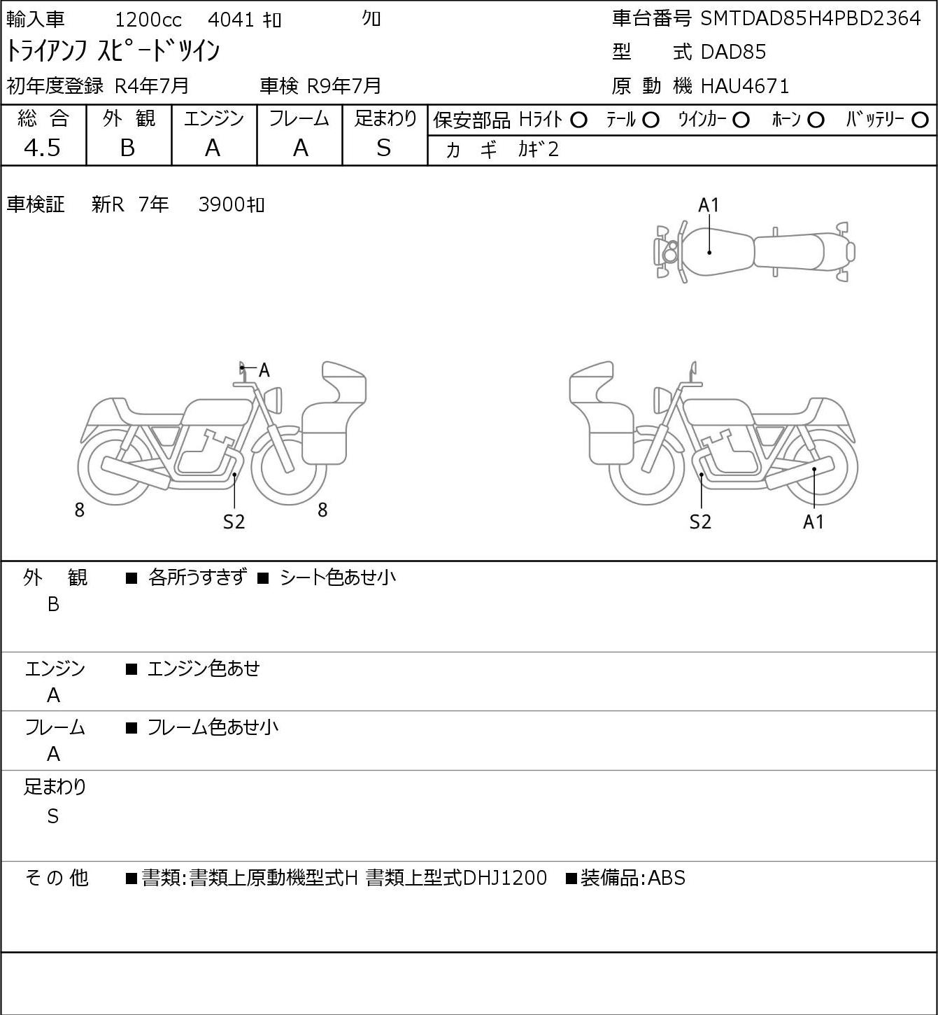 Detailed vehicle condition analysis performed by Japanese experts. Check damage codes below.