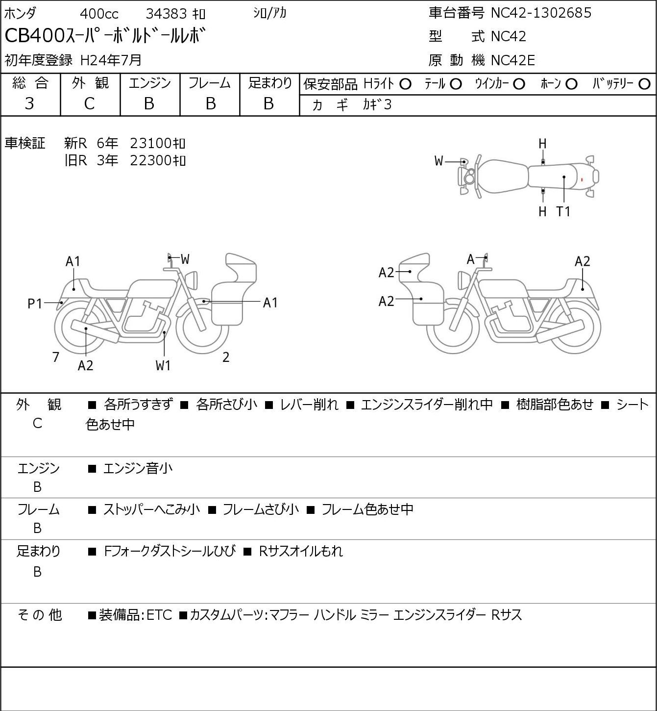 Detailed vehicle condition analysis performed by Japanese experts. Check damage codes below.