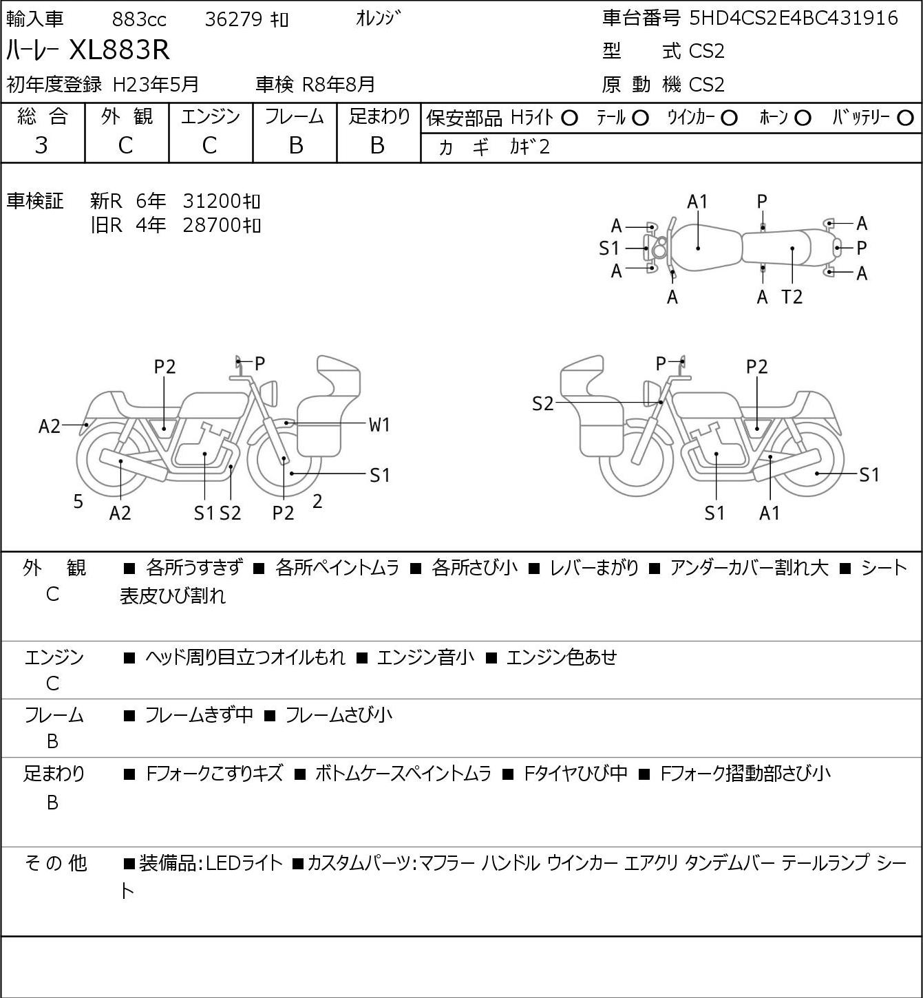 Detailed vehicle condition analysis performed by Japanese experts. Check damage codes below.